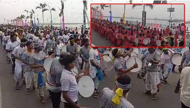 హైదరాబాద్: తెలంగాణ 10వ జయంతి వేడుకల్లో భాగంగా సాంస్కృతిక శాఖ ఆధ్వర్యంలో 125 అడుగుల అంబేద్కర్ విగ్రహం నుంచి అమరవీరుల స్థూపం వరకు సంస్మరణ దినోత్సవం సందర్భంగా ‘అమరవీరుల సమ్మేళనం’ నిర్వహించారు. ఈ కార్యక్రమంలో 30 కళారూపాలకు చెందిన 6,000 మంది కళాకారులు పాల్గొన్నారు. ర్యాలీలో యక్షగానం, ఒగ్గుడోలు, బతుకమ్మ, బోనాలు, డప్పు, బంజారా, గుస్సాడి, కొమ్ము కోయ, పోతురాజుకు, పులి వేషాలు, పేరిణి, కథక్, కూచిపూడి, భరతనాట్యం తదితర కళాకారులు పాల్గొన్నారు.