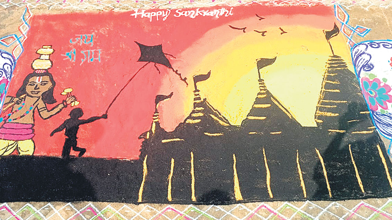 ఆకట్టుకున్న అయోధ్య రామ మందిరం ముగ్గు-Namasthe Telangana