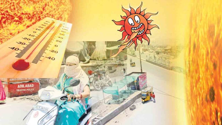 ఆదిలాబాద్ ఉమ్మడి ప్రాంతంలో ఎండలు మండిపోయాయి. ఉదయం నుంచి ఉగ్రభానుడు తన ప్రతాపాన్ని చూపిస్తున్నాడు. కొన్ని రోజులుగా అకాల వర్షంతో వాతావరణం చల్లబడింది. వారం రోజులుగా 40 డిగ్రీలకు పైగా ఉష్ణోగ్రతలు నమోదవుతున్నాయి. శనివారం ఆదిలాబాద్ జిల్లాలో 44.3, నిర్మర్లో 43.8, మంచిర్యాల్లో 43.6, కొమ్రంబిం అస్ఫాబాద్లో 42.2 డిగ్రీల సెల్సియస్ ఉష్ణోగ్రతలు నమోదయ్యాయి.