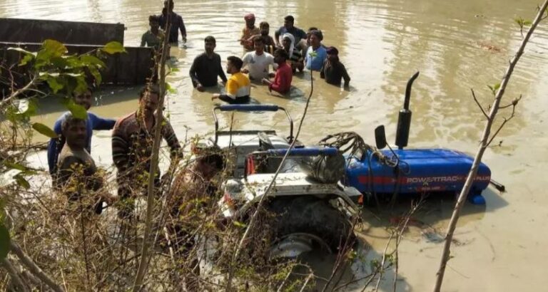 ఉత్తరప్రదేశ్‌ లో నదిలోపడిన యాత్రికుల ట్రాక్టర్‌.. చిన్నారులు సహా 15 మంది మృతి