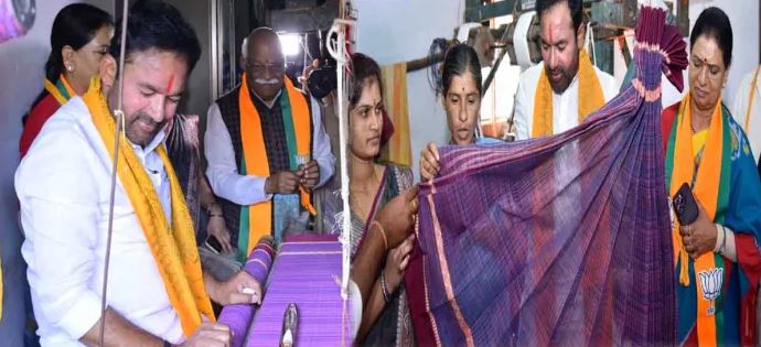 వోకల్ ఫర్ లోకల్ నినాదంతో చేనేత ఉత్పత్తులకు ప్రచారం కల్పిస్తున్న మోడీ ప్రభుత్వం నేతన్నలకు అండగా ఉండడమే కాక ప్రధానమంత్రి మోడీ స్వయంగా వారంలో ఒకరోజు తప్పకుండా చేనేత వస్త్రాలు ధరిస్తారని తెలిపారు కిషన్ రెడ్డి. విజయ సంకల్ప యాత్రలో భాగంగా నేడు నారాయణ పేటలో నేతన్నలను కలిసి ఆయ‌న మాట్లాడారు.. నారాయణ పేటలో చీరలు నేస్తున్న నేతన్నలతో పాటుగా కాసేపు మగ్గం నేసి, అక్కడి నేతన్నలు ఎదుర్కొంటున్న సమస్యలను అడిగి తెలుసుకున్నారు. నేత‌న్న‌ల‌ను ఆదుకునేందుకు మోడీ ప‌లు ప‌థ‌కాల‌ను ప్ర‌వేవ‌పెట్టార‌ని,వాటిని వినియోగించుకోవాల‌ని కోరారు.