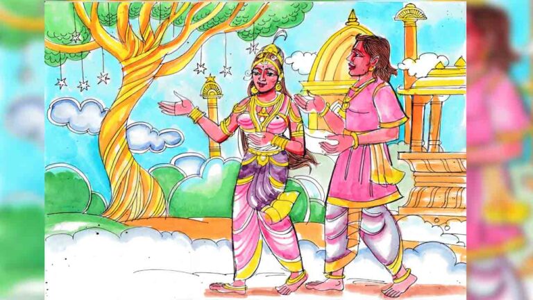 “నేను పూరీ జగన్నాథ్ స్వామి అనుచరుడిని. నా పేరు రుచికు. స్వర్గం గురించి చాలా పురాణాలలో చదివాను. “స్వామీ! నీ దయ ఉంటే నేను చూడగలను! నేను ప్రార్థన చేసి నిద్రపోయాను. అప్పుడు జగన్నాథుడు కలలో కనిపించాడు…’భక్తా! నీ కోరికలు తీరుస్తాను. రేపు రాత్రి ఈ ఊరిలో వేశ్య చంద్రలేఖ పెరట్లో ఉన్న అశోక చెట్టు ఎక్కు. తిలోత్తమ మరియు జయంతి తీర్థయాత్ర కోసం ఇక్కడికి వస్తారు. నా దయవల్ల మీరు వారి విమానం ఎక్కగలరు. మీరు తిలోత్తమతో స్నేహంగా ఉంటారు. ఆవిడ నీకు స్వర్గలోక లక్షణాలన్నీ చూపుతుంది” అన్నాడు. స్వామి చెప్పింది నిజమే. నువ్వు ఇంకా ఉత్తముడివేనా?” అని అడిగాను.