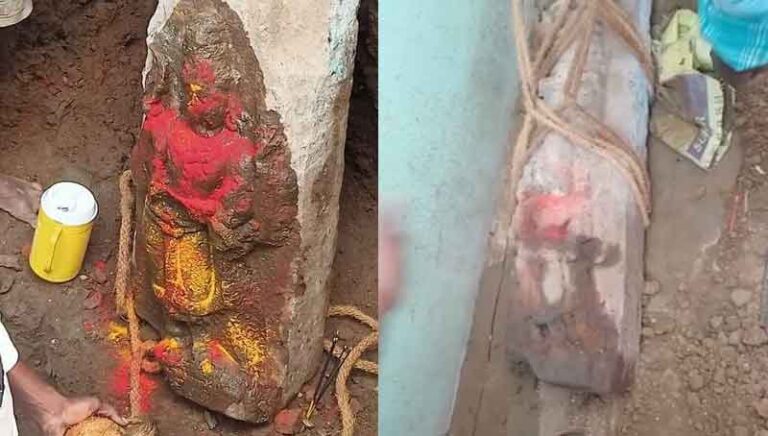 కొత్త ఇంటి నిర్మాణం కోసం జరిపిన తవ్వకాల్లో అమ్మ రాతి విగ్రహం బయటపడింది. ఈ ఘటన వరంగల్ జిల్లా చార్ బౌలిలో చోటుచేసుకుంది. శుక్రవారం అమ్మవారి విగ్రహం లభించడంతో లక్ష్మీమాత కరుణించడంతో ఇంటి యజమానులు ఆనందం వ్యక్తం చేశారు. ఇదిలా ఉండగా.. తవ్వకాల్లో లభించిన విగ్రహాలను స్థానికులు సందర్శించి ప్రత్యేక పూజలు చేస్తున్నారు.
