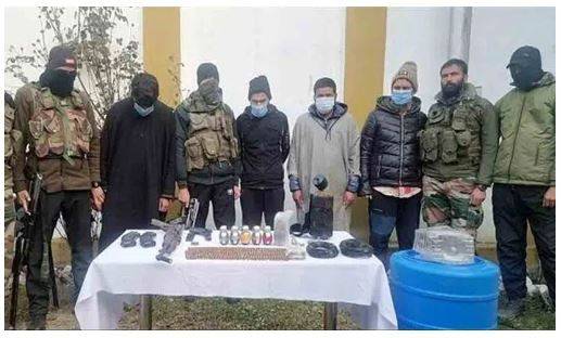 జమ్మూకశ్మీర్‌లో భారీ ఉగ్రవాదుల కుట్రను భద్రతా బలగాలు ఛేదించారు. ఇస్లామిక్ జిహాద్ గ్రూపుకు చెందిన ఐదుగురు తీవ్రవాద సానుభూతిపరులను అరెస్టు చేశారు. ఉగ్రవాదులకు ఆయుధాలు, ఆశ్రయం కల్పిస్తున్నట్లు పోలీసులు తెలిపారు. నిందితుల నుంచి పెద్ద ఎత్తున ఆయుధాలు, పేలుడు పదార్థాలను స్వాధీనం చేసుకున్నారు. హిజ్బుల్లా టెర్రరిస్ట్ మాడ్యూల్ మిలిటరీ ఇంటెలిజెన్స్ అందించిన సమాచారం ఆధారంగా భద్రతా బలగాలు నిందితులను అరెస్టు చేశాయి. ముందుగా కుప్వారా జిల్లాకు చెందిన అబ్ రవూఫ్ మాలిక్, అల్తావాఫ్ అహ్మద్ పాయర్, రియాజ్ అహ్మద్‌లను అదుపులోకి తీసుకుని విచారించారు. వారు అందించిన సమాచారం మేరకు మరో ఇద్దరిని అదుపులోకి తీసుకున్నారు.