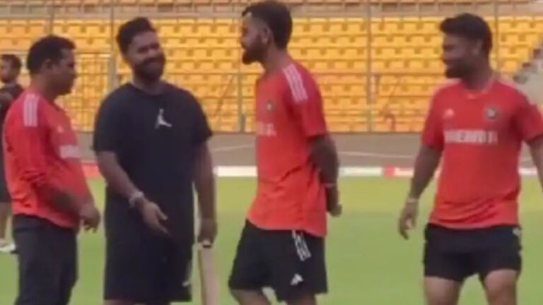 టీమిండియా ప్రాక్టీస్‌ సెషన్‌కు వచ్చిన పంత్‌.. చిన్నస్వామి స్టేడియంలో విరాట్‌ కోహ్లీ, రింకూ సింగ్‌లతో కలిసి మాట్లాడుతున్న వీడియోను కోహ్లీ ఫ్యాన్ ఒకరు సోషల్‌ మీడియాలో పోస్ట్‌ చేశారు. గాయం నుంచి పూర్తిస్థాయిలో కోలుకున్న పంత్‌.. ఇప్పుడిప్పుడే ఫిట్‌నెస్‌ను నిరూపించుకునే పనిలో ఉన్నాడు. పంత్‌ కొన్నాళ్లుగా బెంగళూరులోనే ఉన్న నేషనల్‌ క్రికెట్‌ అకాడమీ (ఎన్సీఏ)లో రిహాబిటేషన్‌ సెంటర్‌లో ఉంటున్న విషయం విదితమే. ఈ ఏడాది ఐపీఎల్‌ సీజన్‌ మొదలయ్యేనాటికల్లా పంత్‌ పూర్తిస్థాయిలో కోలుకుని క్రికెట్‌లోకి రీఎంట్రీ ఇవ్వాలని భావిస్తున్నాడు. ఆ దిశగానే అతడి ట్రైనింగ్‌ కొనసాగుతోంది.