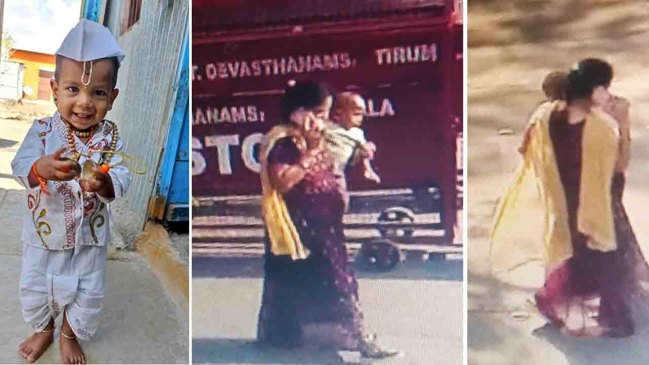 తిరుమల : తిరుమలలో తెలంగాణకు చెందిన బాలుడి అపహరణ(Kidnap) కలకలం సృష్టిస్తుంది. తెలంగాణ(Telangana) లోని గద్వాల్కు చెందిన మూడు సంవత్సరాల బాలుడు అభినయ్ను యాత్రికుల వసతి సముదాయం 2 వద్ద గుర్తుతెలియని మహిళ కిడ్నాప్ చేసింది. తమ కుమారుడు కనిపించడం లేదంటు బాలుడి తల్లిదండ్రులు వెంటనే ఫిర్యాదు చేయగా పోలీసులు ఘటనా స్థలంలో సీసీ కెమెరాలను పరిశీలించారు.