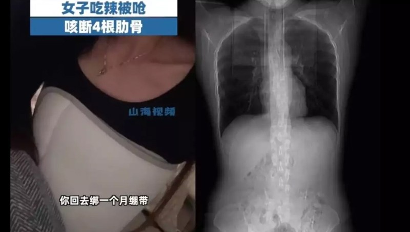 చైనాలోని షాంఘైకి చెందిన శ్రీమతి హువాంగ్ తన భోజనాల కోసం కొంచెం స్పైసీ ఫుడ్‌ను కలిగి ఉంది. ఆమెకు తీవ్రమైన దగ్గు వచ్చింది. నేను దగ్గినప్పుడు, నా ఛాతీలో తీవ్రమైన నొప్పి అనిపించింది. నొప్పి తీవ్రం కావడంతో డాక్టర్‌ వద్దకు వెళ్లింది. దేహదారుఢ్య పరీక్షలు, స్కానింగ్ చేసే వైద్యులకు వింత అనుభవం ఎదురైంది. వైద్యులు స్కానింగ్‌ను పరిశీలించగా ఆమె ఛాతీలో నాలుగు పక్కటెముకలు విరిగిపోయినట్లు గుర్తించారు.