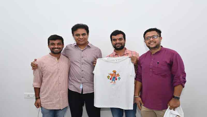 హైదరాబాద్: టీ షర్టుల పైన జియోగ్రాఫికల్ ఇండికేషన్ (GI) చేర్యాల్ పెయింటింగ్ ని వేసిన తెలంగాణ కళాకారులు రాకేష్, వినయ్ లకి భారత రాష్ట్ర సమితి వర్కింగ్ ప్రెసిడెంట్ కేటీఆర్ అభినందనలు తెలిపారు. ఇలాంటి వినూత్నమైన పద్ధతుల వలన సాంప్రదాయ కళలకు మరింత డిమాండ్ వస్తుందని కేటీఆర్ అన్నారు. వీటికి మరింత ఆన్లైన్ మార్కెటింగ్, బ్రాండింగ్ అవసరం ఉన్నదని ఆయన అన్నారు. జియోగ్రాఫికల్ ఇండికేషన్ పొందిన చేర్యాల పెయింటింగ్ వంటి ఉత్పత్తులకు ప్రచారం వలన కళాకారులకు ఎంతో లబ్ధి చేకూరుతుందన్నారు. ఈరోజు రాకేష్ వినయ్ లు రూపొందించిన టీ షర్టులను తెలంగాణ భవన్ లో కేటీఆర్ ఆవిష్కరించారు.