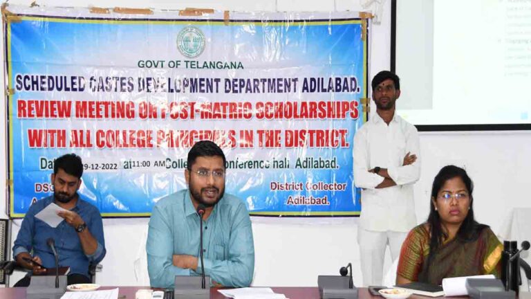 ఎదులాపురం, డిసెంబర్ 29: ముందుగా నిర్ణయించిన కులాల విద్యార్థుల స్కాలర్షిప్ దరఖాస్తులను సకాలంలో ఆన్లైన్లో నమోదు చేయాలని స్థానిక ఏజెన్సీ అదనపు కలెక్టర్ రిజ్వాన్ భాషా షేక్ ఆదేశించారు. కలెక్టరేట్ హాలుకు సంబంధించి ప్రిన్సిపాల్, హెచ్ఎంలతో గురువారం సమావేశమై ప్రీ, పోస్ట్ మ్యాథమెటిక్స్ స్కాలర్షిప్లపై చర్చించారు. ఈ సందర్భంగా ఆయన మాట్లాడుతూ 2021-22 ఆర్థిక సంవత్సరానికి సంబంధించి పోస్ట్ మెజర్మెంట్ అలవెన్సులకు సంబంధించి పెండింగ్లో ఉన్న 143 దరఖాస్తులను జనవరి 6వ తేదీలోగా సమర్పించాలన్నారు.