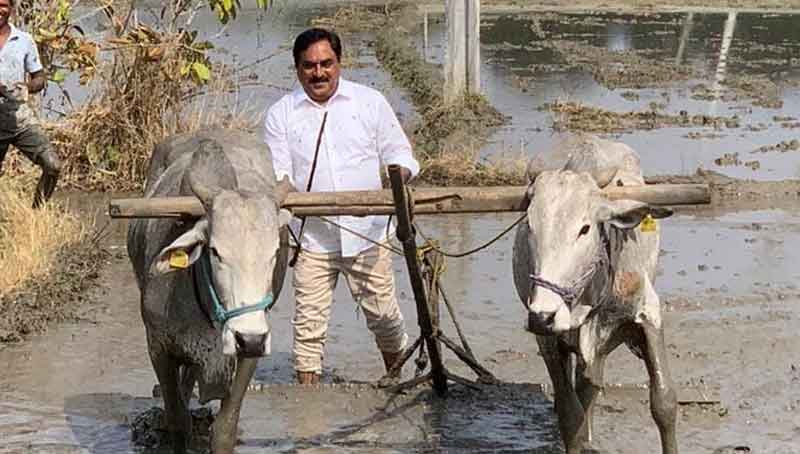 జాతీయ పరిపాలనా మండలి రాజ్ శాఖ మంత్రి ఎల్లబెల్లి దయాకల్ రావు రైతు రూపం దాల్చారు. స్వగ్రామమైన పర్వతగిరిలోని తన పొలంలో జరుగుతున్న పనులను చూసి వెంటనే పొలంలోకి వెళ్లి…గొర్రెలను పట్టుకుని దున్నుతున్నాడు. కూలీలతో పాటలు పాడుతూ నోట్స్ రాసుకున్నారు.