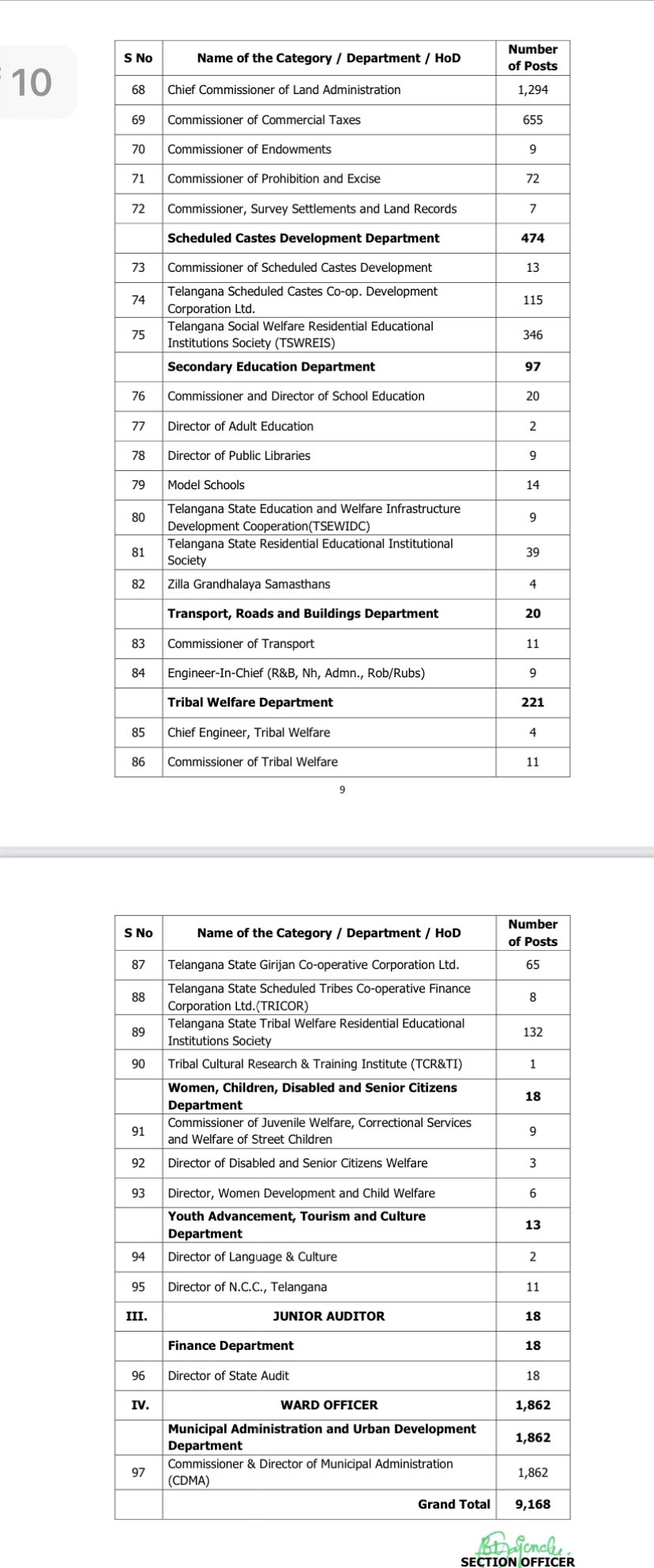 TSPSC డైరెక్ట్ రిక్రూట్మెంట్ ద్వారా 9,168 కేటగిరీ IV ఖాళీలు భర్తీ చేయబడ్డాయి#తెలంగాణ ప్రభుత్వం కింద #CMKCR తన నిబద్ధత, ఆశయాలను నెరవేరుస్తున్న నాయకుడు గారూ.. ఇంత పెద్ద సంఖ్యలో పదవులు భర్తీ చేసేందుకు అంగీకరించారు.