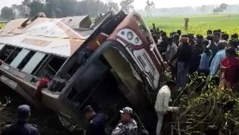 నేపాల్ సరిహద్దు వద్ద భారతీయ యాత్రికుల బస్సు బోల్తా పడింది