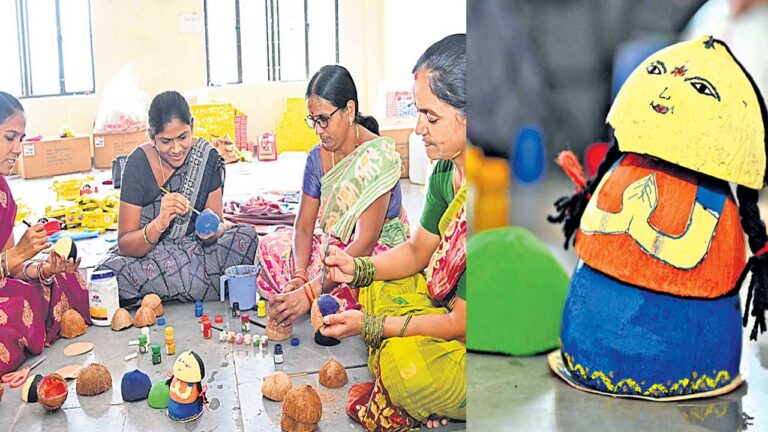 “వాగ్మీ మహిళా సంఘం” పేరుతో పదకొండు మంది సాధారణ మహిళలు ఏకం అయ్యారు. అనేక ఉత్పత్తులు ప్రాణం పోసుకున్నాయి. తాజాగా మరో సృజనాత్మక ఆవిష్కరణ జరిగింది. కొబ్బరి చిప్ప కొత్త రూపు సంతరించుకుంది. యాదాద్రి భువనగిరి జిల్లా ఆలేరులోని ప్రభుత్వ ఇండోర్ స్టేడియంలో వాగ్మీ మహిళా సంఘం సీడ్ సాక్షిగా గతేడాది అక్టోబర్ పండుగ సందర్భంగా ఆలేరుకు చెందిన 11 మంది మహిళలు సంఘంగా ఏర్పడి కొత్త ఉత్పత్తులను విడుదల చేశారు. కలెక్టర్ పమేలా సత్పతి మరో అడుగు ముందుకేశారు. ఇటీవల యాదగిరిగుట్ట లక్ష్మీ నరసింహస్వామి ఆలయం నుంచి సేకరించిన కొబ్బరి చిప్పలతో అందమైన బొమ్మలను తయారు చేస్తున్నారు. వాటిని ఎప్పటికప్పుడు మార్కెట్లో విక్రయిస్తున్నారు.