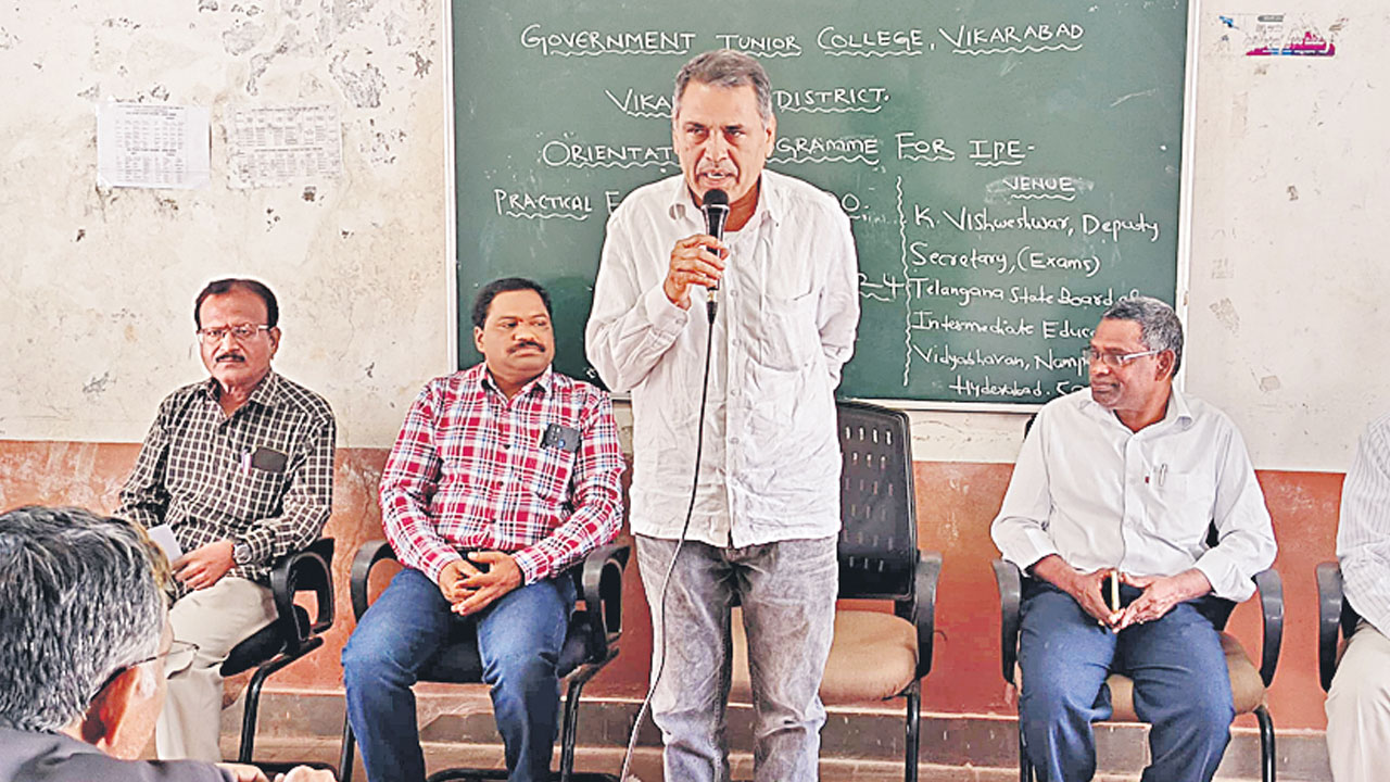 వికారాబాద్‌, జనవరి 27 : ఇంటర్మీడియట్‌ ప్రాక్టికల్‌ పరీక్షలను పకడ్బందీగా నిర్వహించాలని జిల్లా ఇంటర్‌ నోడల్‌ అధికారి ఎన్‌. శంకర్‌నాయక్‌ కళాశాలల ప్రిన్సిపాళ్లు, డిపార్ట్‌మెంటల్‌ ఆఫీసర్లను ఆదేశించారు. శనివారం వికారాబాద్‌ జిల్లా ఇంటర్మీడియట్‌ నోడల్‌ అధికారి కార్యాలయంలో ఆయా జూనియర్‌ కళాశాలల ప్రిన్సిపాళ్లు, డిపార్ట్‌మెంటల్‌ ఆఫీసర్లతో నిర్వహించిన సమావేశంలో ఆయన మాట్లాడారు. జిల్లావ్యాప్తంగా జనరల్‌లో 35, ఒకేషనల్‌లో 13 ప్రాక్టికల్‌ పరీక్షా కేంద్రాలను ఏర్పాటు చేసినట్లు తెలిపారు.