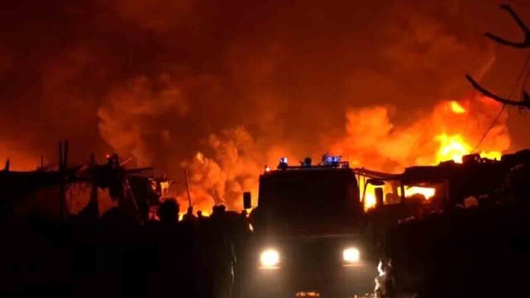 సమాచారం అందుకున్న వెంటనే 26 ఫైర్ ఇంజన్లు ఘటనాస్థలికి చేరుకున్నాయి. గాలి కారణంగా మంటలు వేగంగా వ్యాపించాయి. మంటలను మోస్తరు అగ్నిప్రమాదంగా ప్రకటించారు. ప్రాణ, ఆస్తి నష్టంపై ఇప్పటి వరకు ఎలాంటి సమాచారం లేదు. పరిస్థితి అదుపులో ఉంది: ఎస్కే దువా, డిప్యూటీ చీఫ్… pic.twitter.com/1Mu0dr7u3Y
