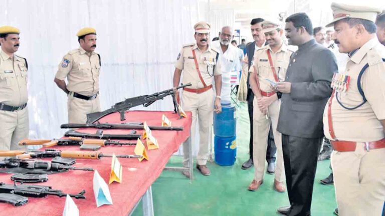 వేడుకల అనంతరం పోలీస్‌పరేడ్‌ గ్రౌండ్‌లో పోలీస్‌ శాఖ ఆధ్వర్యంలో ఆయుధాల ప్రదర్శన నిర్వహించారు. వివిధ రకాల గన్‌లు, వాటి వివరాలను ప్రదర్శించగా.. కలెక్టర్‌, సీపీ, అదనపు డీసీపీలు, సిబ్బంది పరిశీలించారు. ఆయుధాల రకాలు, వాటి పనితీరును కలెక్టర్‌కు సిబ్బంది వివరించారు.