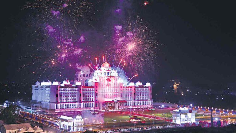 పీయూసీ, ఏప్రిల్ 30 (నమస్తే తెలంగాణ): స్వరాష్ట్రంలో మహోజ్వల ఘట్టం ఆవిష్కృతమైంది. చరిత్రలో నిలిచిపోయే అత్యాధునిక సౌకర్యాలతో కూడిన డాక్టర్ బీఆర్ అంబేద్కర్ సచివాలయాన్ని ఆదివారం సీఎం కేసీఆర్ ప్రారంభించారు. అనంతరం మంత్రులు, ముఖ్యమంత్రులంతా వారి వారి గదుల్లో కొలువుదీరారు. కీలక పత్రాలపై సీఎం కేసీఆర్, మంత్రులు సంతకాలు చేశారు. ముఖ్యంగా కాంట్రాక్టు ఉద్యోగుల క్రమబద్ధీకరణ పత్రాలపై ముఖ్యమంత్రి తొలిసారి సంతకం చేయడంతో ఉద్యోగులు హర్షం వ్యక్తం చేస్తున్నారు. బర్దియాలో డబుల్ నివాసాలు మరియు ధూపదీప నైవేద్య పథకం అమలుకు సంబంధించిన మార్గదర్శకాలపై వివిధ మంత్రిత్వ శాఖల మంత్రులు సంతకాలు చేశారు. సొంత ఇంటి కలను సాకారం చేసుకోబోతున్న పేదలు సంతోషంగా ఉన్నారు. దీంతో ట్యాంక్బండ్ పరిసరాల్లో సందడి నెలకొంది. సాగర్ లో సచివాలయం తరహాలో భగీరథ బోటు సందర్శకులను అలరిస్తోంది. రాత్రి వేళల్లో.. ఆకాశంలో బాణాసంచా మిరుమిట్లు గొలిపే వేళ.. ప్రభుత్వ భవనాలు రంగురంగుల విద్యుత్ దీపాలతో దేదీప్యమానంగా వెలిగిపోతుంటే.. చూపరులకు కళ్లు బైర్లు కమ్మడం లేదు.