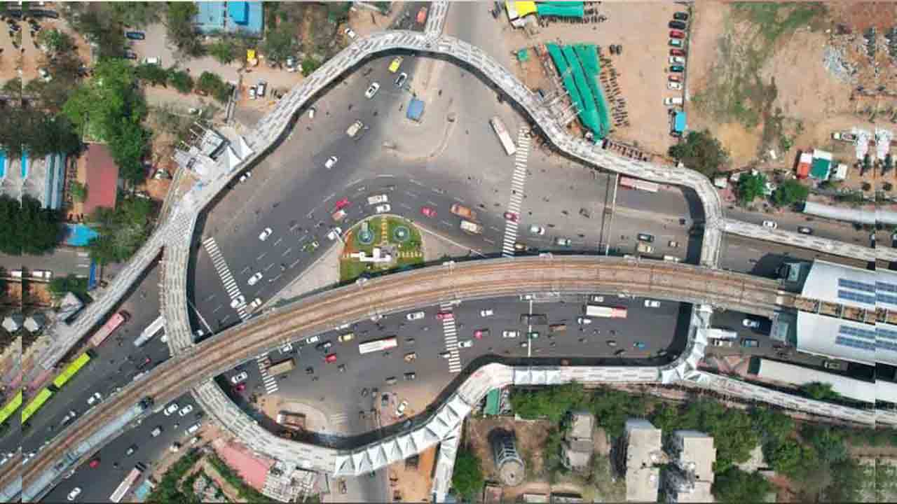 పాదచారుల వంతెన పొడవు 665 మీటర్లు, నిలువుగా 4 మీటర్ల వెడల్పు మరియు 6 మీటర్ల ఎత్తు, మరియు బస్సు మరియు సబ్వే స్టేషన్లను కలుపుతుంది, మీరు రోడ్డు దాటకుండా ఇక్కడ నుండి అక్కడికి చేరుకోవడానికి వీలు కల్పిస్తుంది. 8 ఎలివేటర్లు, 4 ఎస్కలేటర్లు మరియు 6 మెట్లు ఉన్నాయి. నాగోల్ రోడ్, రామంతాపూర్ రోడ్, GHMC థీమ్ పార్క్, GHMC కార్యాలయం సమీపంలోని వరంగల్ బస్టాండ్, ఉప్పల్ పోలీస్ స్టేషన్ మరియు ఉప్పల్ సబ్స్టేషన్లలో ప్రవేశాలు మరియు నిష్క్రమణలు ఉన్నాయి. దీని నిర్మాణంలో 1,000 టన్నులకు పైగా ఉక్కును ఉపయోగించారు.