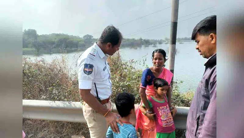భర్తతో వాగ్వాదం జరగడంతో ఆ మహిళ ఇద్దరు పిల్లలతో కలిసి హిమాయత్ సాగర్ చెరువు వద్దకు వచ్చింది. చిన్నారితో పాటు చెరువులో దూకేందుకు ప్రయత్నించిన మహిళను చూసిన ట్రాఫిక్ మేనేజ్మెంట్ బ్యూరో సిబ్బంది ఘటనా స్థలానికి చేరుకుని మహిళను, ఇద్దరు పిల్లలను వెనక్కి లాగారు.