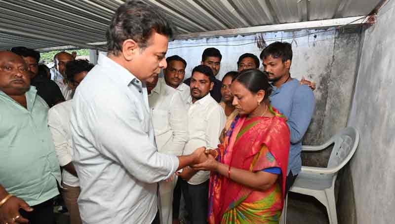 కరీంనగర్ జిల్లా చొప్పదండి మాజీ ఎమ్మెల్యే బొడిగే శోభ భర్త గాలన్న ఇటీవల మృతి చెందిన విషయం తెలిసిందే. ఈ రోజు శోభ స్వగ్రామం సైదాపూర్ మండలం వెంకటేశ్వర్లపల్లిలో బీఆర్ఎస్ పార్టీ వర్కింగ్ ప్రెసిడెంట్ కేటీఆర్ పరామర్శించారు. శోభ కుటుంబానికి ఎల్లవేళలా అండగా ఉంటామని కేటీఆర్ హామీ ఇచ్చారు. కేటీఆర్ వెంట కరీంనగర్ శాసనసభ్యులు గంగుల కమలాకర్, మాజీ పార్లమెంట్ సభ్యులు వినోద్ కుమార్, మాజీ ఎమ్మెల్యేలు రసమయి బాలకిషన్, వొడితెల సతీష్ బాబు, మాజీ ఎమ్మెల్సీ కర్నే ప్రభాకర్ తదితరులు ఉన్నారు.