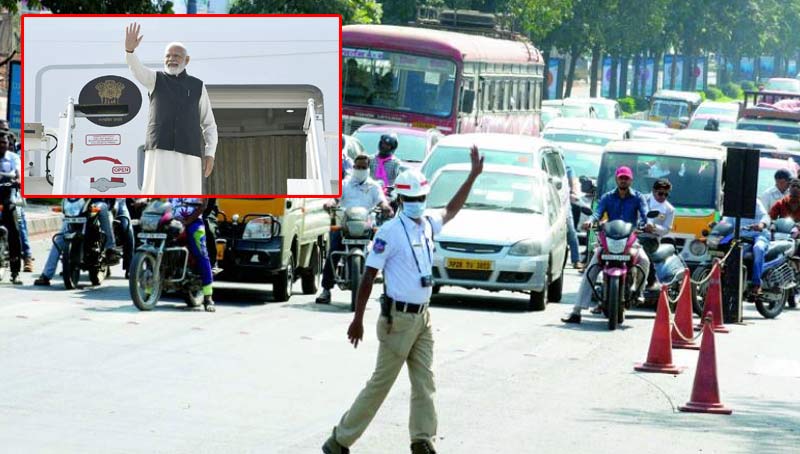 ప్రధాని పర్యటన దృష్ట్యా నగరంలోని ఈ ప్రాంతాల్లో ట్రాఫిక్ రద్దీ ఎక్కువగా ఉన్న దృష్ట్యా ఈ ప్రాంతాల ప్రజలు ప్రత్యామ్నాయ మార్గాల్లో వెళ్లాలని సీపీ ఆనంద్ సూచించారు. రాజీవ్ గాంధీ విగ్రహం జంక్షన్, గ్రీన్ ల్యాండ్స్, ప్రకాష్నగర్, రసూల్పురా సిటిఓ ఫ్లాజా, ఎస్బిహెచ్, వైఎంసిఎ, సెయింట్ జాన్ రోటరీ, సంగీత్ ఎక్స్ రోడ్, ఆలుగడబావి, చిలకలగూడ జంక్షన్, ఎంజె రోడ్డు, ఆర్పి రోడ్డు, ఎస్పి రోడ్డు కొండరాబాద్లో ట్రాఫిక్ ఎక్కువగా ఉంటుందని తెలిపారు. సికింద్రాబాద్ రైల్వేస్టేషన్కు వెళ్లే వారు ముందుగానే స్టేషన్కు చేరుకోవాలని, ట్రాఫిక్ రద్దీని దృష్టిలో ఉంచుకుని అప్రమత్తంగా ఉండాలని సూచించారు. ఉప్పల్-సికింద్రాబాద్ మార్గంలో ట్రాఫిక్ జామ్ల కారణంగా రూట్లను మళ్లించాలని పోలీసులు వాహనదారులకు సూచించారు.