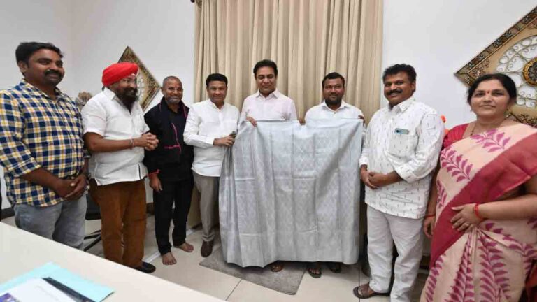 వెండి చీరను ఆవిష్కరించిన మంత్రి కేటీఆర్