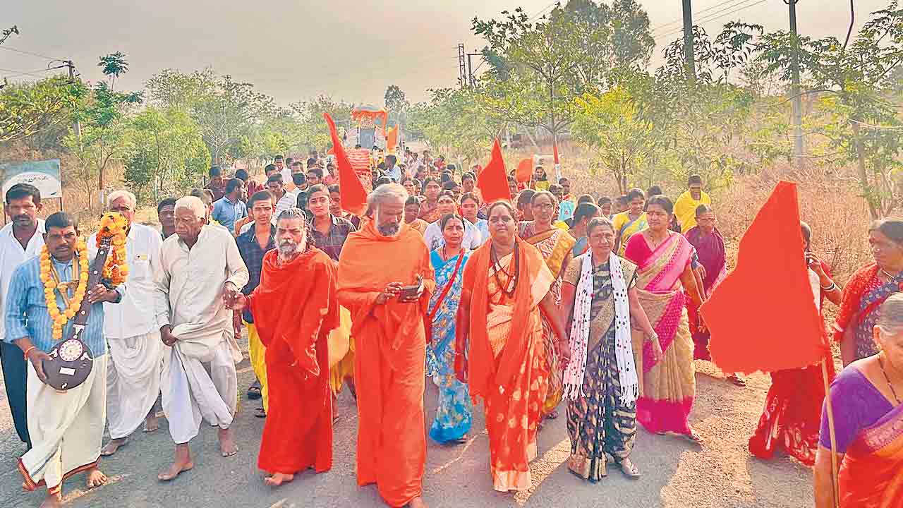 న్యాల్కల్, మార్చి 24: దత్తగిరి మహరాజ్ 45వ వార్షిక అమర తిథిని పురస్కరించుకొని మండలంలోని పలు గ్రామాల మీదుగా వస్తున్న దత్తగిరి మహరాజ్ పాదయాత్ర- పల్లకీ సేవకు భక్తులు ఘనంగా స్వాగతం పలికారు. ఆదివారం మండలంలోని మిర్జాపూర్(ఎన్) గ్రామంలోకి చేరుకున్న దత్తగిరి మహరాజ్ పాదయాత్ర-పల్లకీసేవకు భక్తులు భజాభజంత్రీలు, భజన కీర్తనల మధ్య స్వాగతం పలికారు. ఈ సందర్భంగా స్థానిక గ్రామంలోని దత్తగిరి ఆశ్రమంలో దత్తగిరి మహరాజ్ విగ్రహానికి పూజారులు ప్రత్యేక పూజలు చేశారు. అనంతరం మండలంలోని ముంగి చౌరస్తా మీదుగా ముంగి ఆదిలక్ష్మీ ఆశ్రమానికి చేరుకుంది. స్థానిక ఆశ్రమ పీఠాధిపతి దేవగిరి మహరాజ్ ఆధ్వర్యంలో పల్లకీసేవకు స్వాగతం పలికి ప్రత్యేక పూజలు చేశారు.