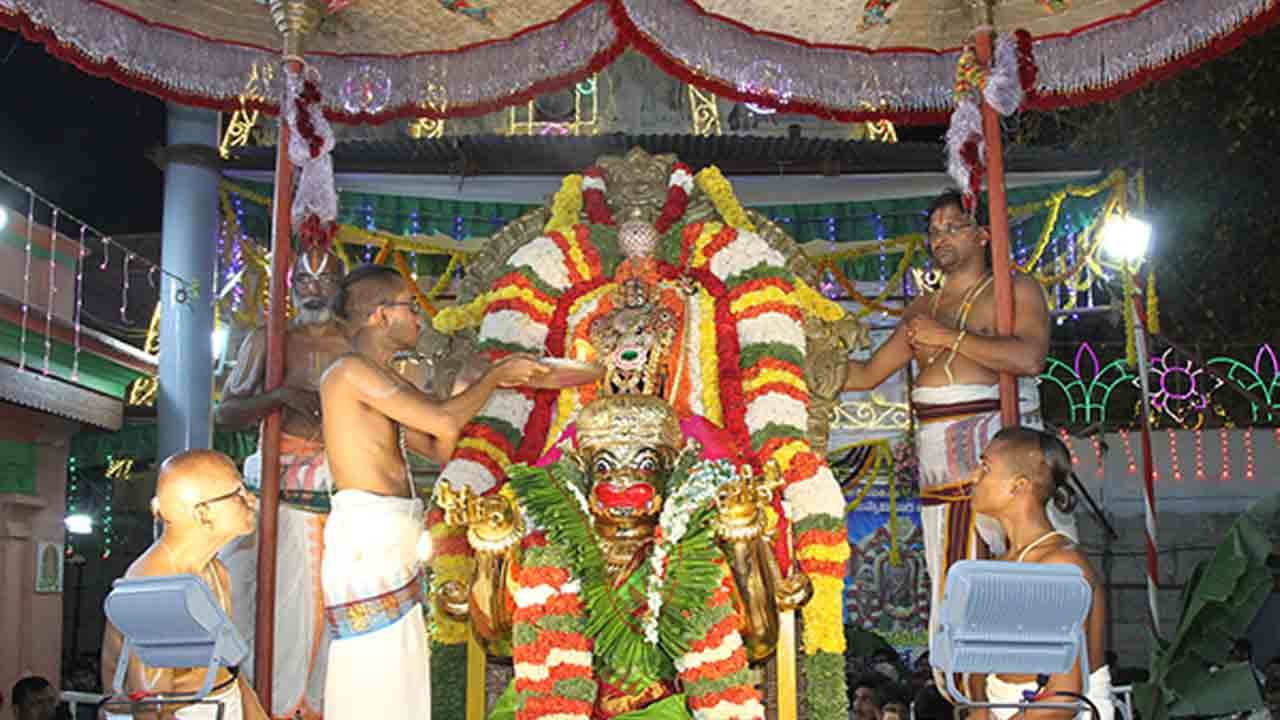 రాత్రి 7 గంటలకు శ్రీరామచంద్రమూర్తి తన ఇష్టదైవమైన హనుమంతుని వాహనంపై ఆలయ నాలుగు మాడ వీధుల్లో విహరిస్తారు. కార్యక్రమంలో ఆలయ డిప్యూటీ ఈవో నాగరత్న, ఏఈవో మోహన్, సూపరింటెండెంట్ రమేష్ కుమార్, అధికారులు, భక్తులు పాల్గొన్నారు.