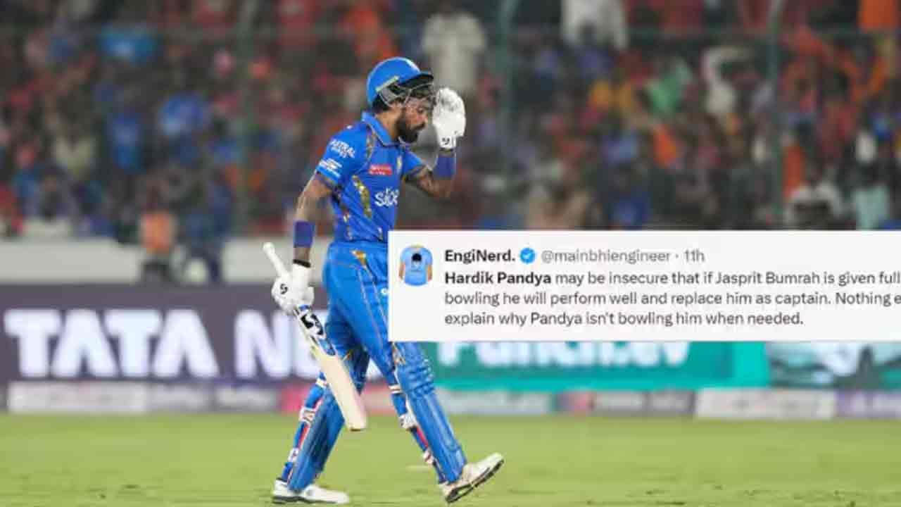 ఓటమి తట్టుకోలేని పాండ్యా.. గ్రౌండ్లో సంతోషంగా కనిపించే ప్రయత్నం చేసినట్లు ఓ యూజర్ తన ఎక్స్ అకౌంట్లో సెటైర్ వీడియోను ట్వీట్ చేశారు.మాజీ క్రికెటర్ ఇర్ఫాన్ పఠాన్.. పాండ్యా ఆట తీరును తప్పుపట్టారు. చాలా పేలవంగా పాండ్యా కెప్టెన్సీ ఉన్నట్లు పేర్కొన్నాడు. ఒకవైపు సన్రైజర్స్ బ్యాటర్లు చెలరేగిపోతుంటే.. ఆ సమయంలో కీలక బౌలర్ బుమ్రాను పాండ్యా వాడుకోకపోవడం అర్థం కావడం లేదన్నారు. అయితే బుధవారం మ్యాచ్లో ముంబై తరపున బుమ్రానే ఉత్తమ బౌలింగ్ ప్రదర్శన ఇచ్చాడు. 4 ఓవర్లలో బుమ్రా కేవలం 36 రన్స్ మాత్రమే సమర్పించాడు. ముంబై తన తర్వాత మ్యాచ్ను ముంబై వేదికగా రాజస్తాన్ రాయల్స్తో ఆడనున్నది.