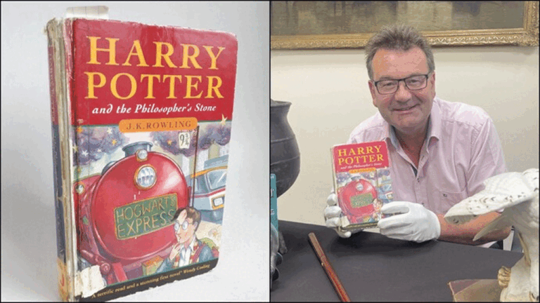 హ్యారీ పోటర్ అరుదైన మొదటి ఎడిషన్ పుస్తకం రూ. 1.1 మిలియన్. హ్యారీ పాటర్ అండ్ ది సోర్సెరర్స్ స్టోన్ యొక్క మొదటి ఎడిషన్ రిచర్డ్ వింటర్టన్ యొక్క వేలం హౌస్ నిర్వహించిన వేలంలో అదృష్టాన్ని పొందింది.