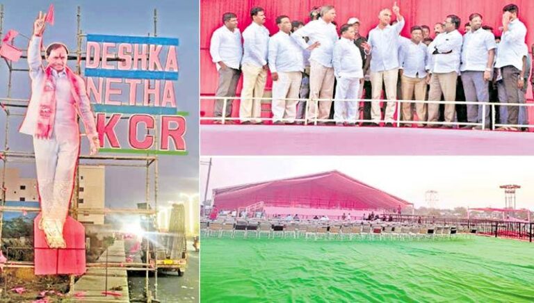 ఈ నేపథ్యంలో ఖమ్మం నగరం గులాబీ పార్టీ హోర్డింగ్ బోర్డులు, డీకూపేజ్గా మారిపోయింది. 100 ఎకరాల్లో మిలియన్ల మంది ప్రజలు సమావేశం. జర్మన్ టెక్నాలజీతో నిర్మించిన వేదికలపై నాలుగు రాష్ట్రాల ప్రధానులు, రాష్ట్ర నేతలు, కీలక జాతీయ నేతలను కూర్చోబెట్టనున్నారు. ఐదు ప్రాంతాల్లో వీఐపీ గ్యాలరీలను ఏర్పాటు చేశారు. 200,000 కుర్చీలు ఏర్పాటు చేస్తున్నారు. వాటిపై లక్షన్నర మంది కూర్చునేలా గ్రీన్ మ్యాట్లు వేస్తున్నారు.