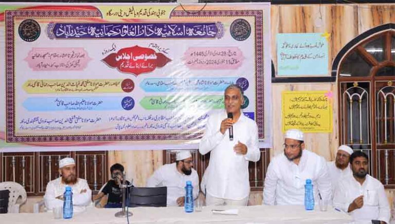 హైదరాబాద్: పాతబస్తీ తలాబ్ కట్టలో నిర్వహించిన ముస్లిం మత పెద్దల సమావేశంలో మాజీమంత్రి హరీష్ రావు పాల్గొని మాట్లాడారు. వివిధ రాష్ట్రాల నుండి వచ్చిన మత పెద్దలను, ముస్లిం సోదరులను కలుసుకోవడం సంతోషంగా ఉందన్నారు. అన్ని రాష్ట్రాలు, దేశంలో ప్రజలు సుఖ శాంతులతో ఉండాలని ఈ సందర్భంగా ఆయన ప్రార్థించారు.