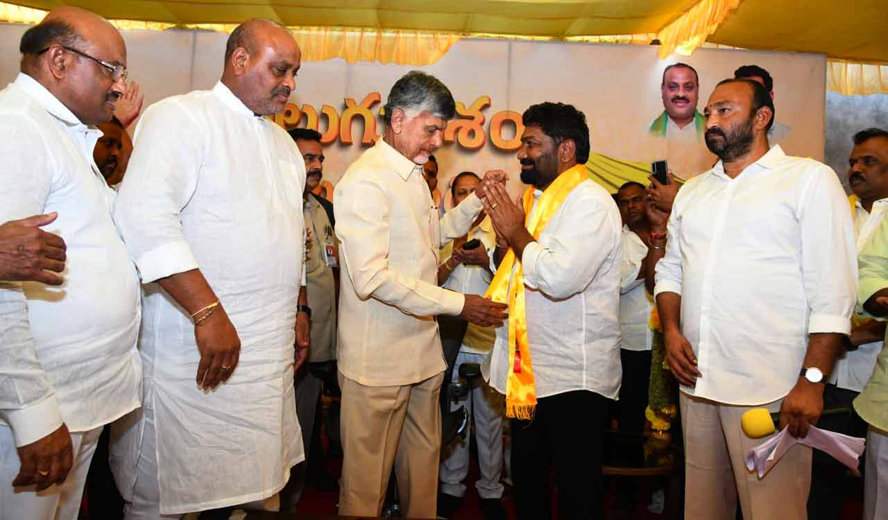 Chandrababu Naidu got Sridhar and Giridhar into TDP by offering them yellow kanduva. He expressed his appreciation to Giridhar for always serving the people. TDP chairman said Giridhar Reddy resigned as chairman of YSRCP Seva Dal.