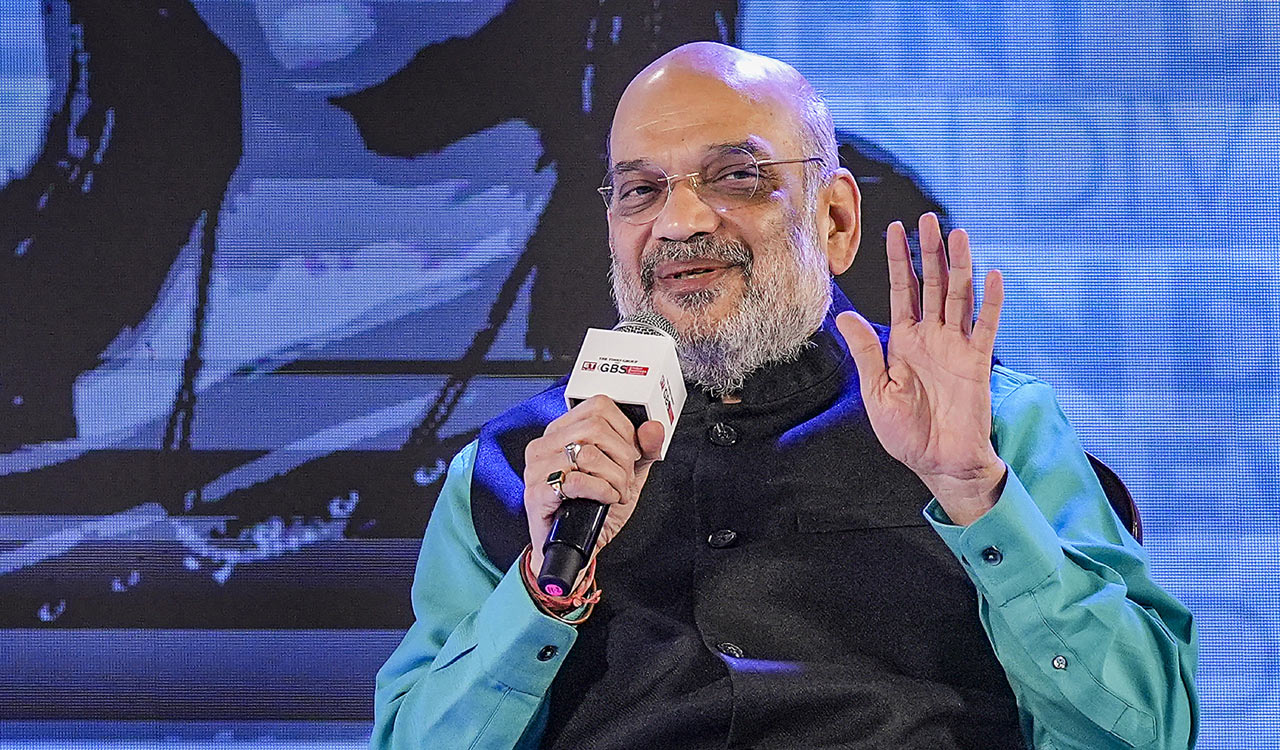 Union Home Minister Amit Shah speaks during the ET Now Global Business Summit, in New Delhi, Saturday, Feb. 10, 2024. (PTI Photo/Manvender Vashist Lav)