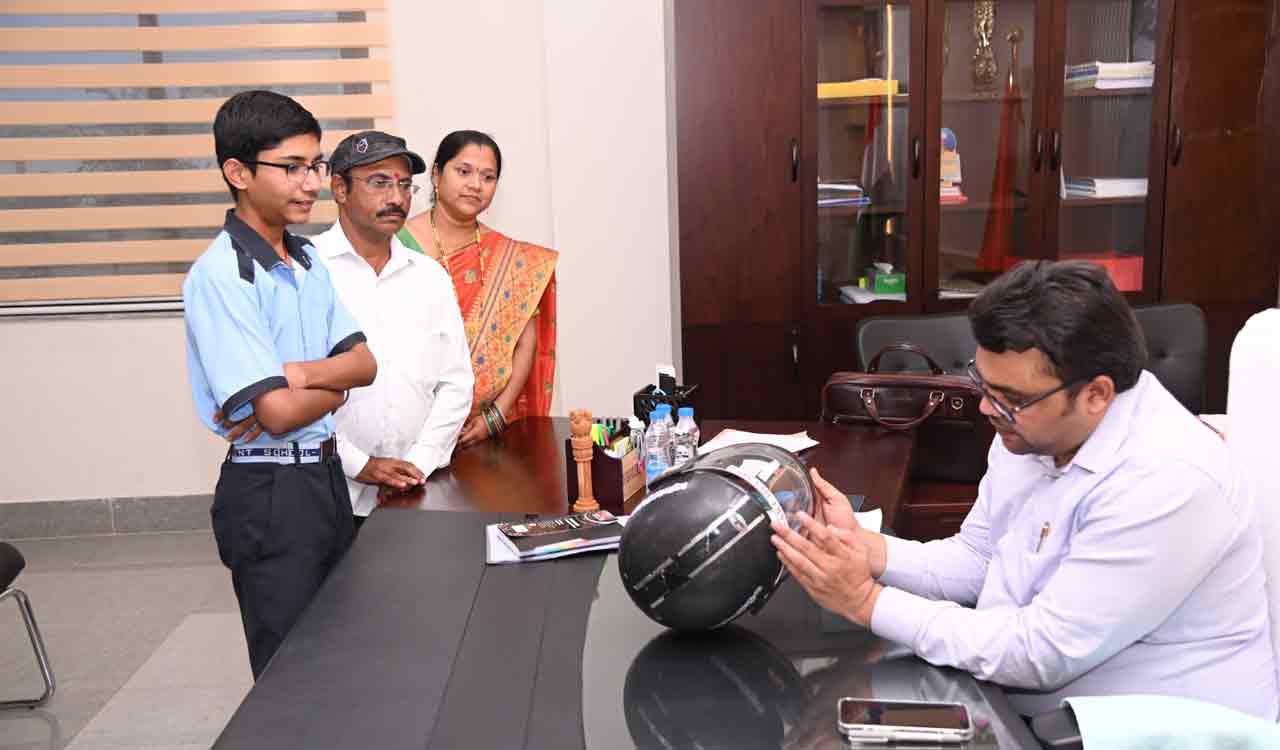 Mancherial: Collector Badavath Santosh appreciated the efforts of Vennampalli Sai Siddanth for making an innovative smart helmet here on Monday.