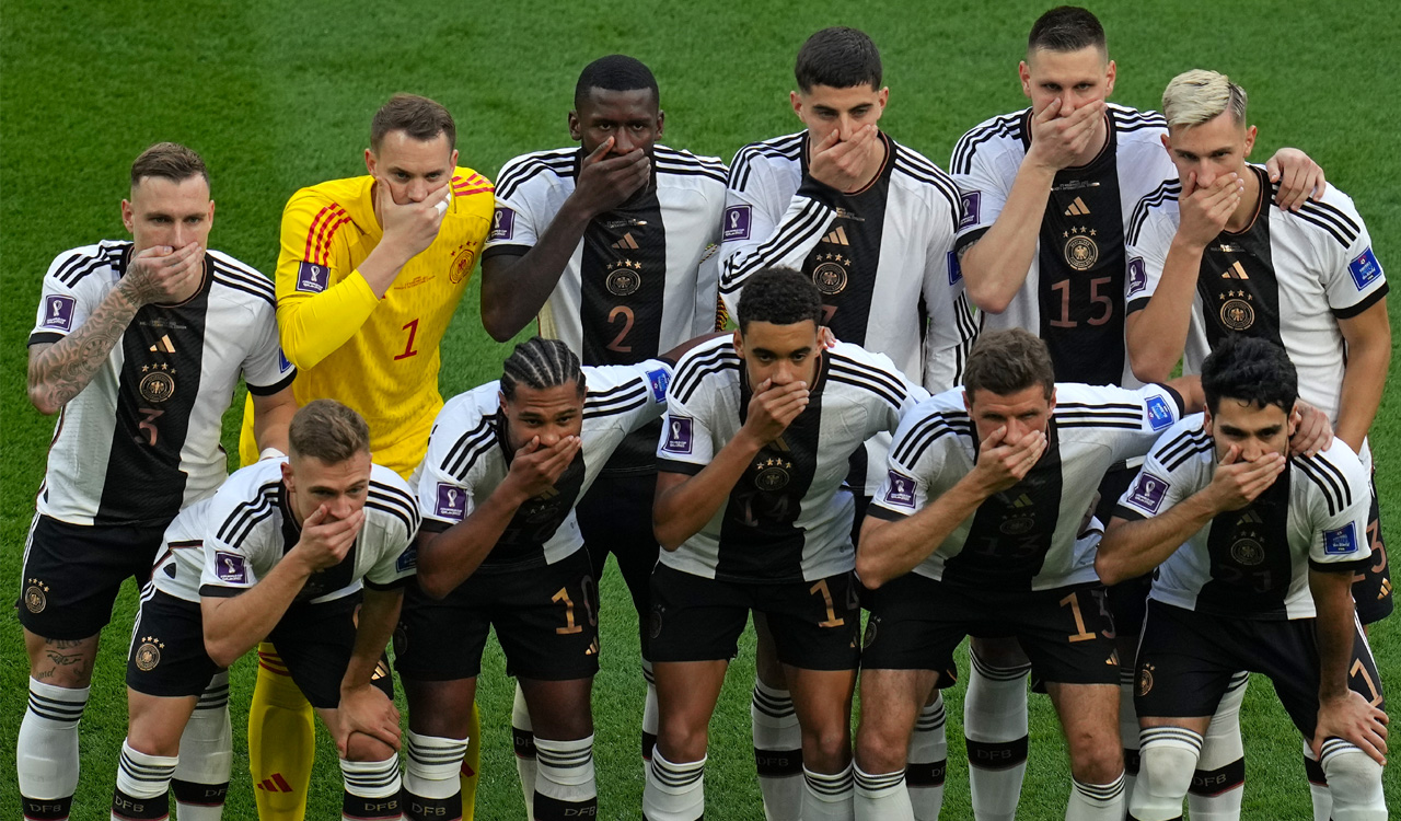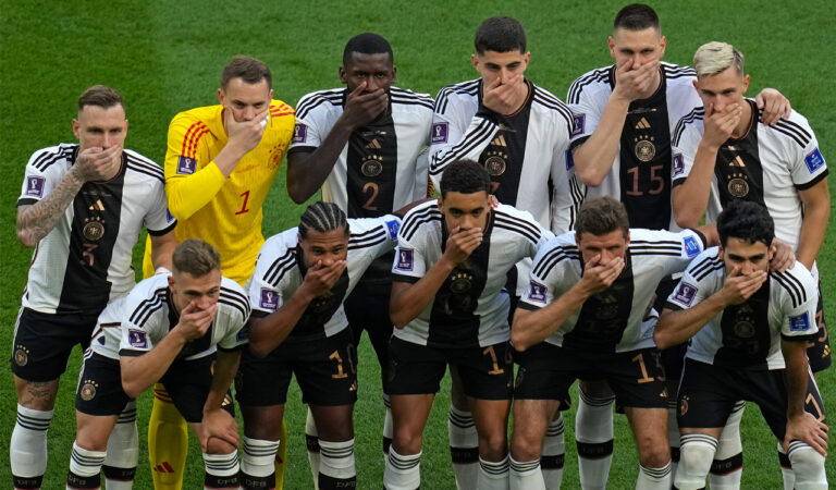 Germany lined up in traditional formation ahead of Wednesday’s game against Japan, with 11 players each covering their mouths with their right hands. “It’s a signal for the team and for us that FIFA is suppressing us,” Germany coach Hansi Flick said after his side’s 2-1 loss to Japan.