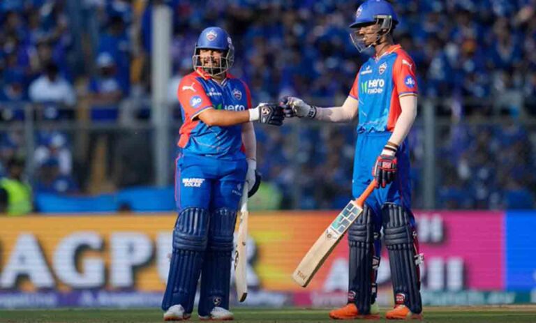 వరుసగా రెండో మ్యాచ్లో రెండొందల పైచిలుకు లక్ష్య ఛేదనకు దిగిన ఢిల్లీకి ఆదిలోనే షాక్ తగిలింది. ఫామ్లో ఉన్న డేంజరస్ ఓపెనర్ డేవిడ్ వార్నర్(10) ఔటయ్యాడు. రొమారియో షెపర్డ్ బౌలింగ్లో సిక్సర్ బాదిన వార్నర్.. ఆ తర్వాత స్లో డెలివరీకి పాండ్యా చేతికి చిక్కాడు. దాంతో, 22 పరుగుల వద్ద ఢిల్లీ తొలి వికెట్ పడింది.