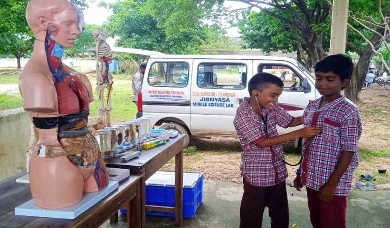 Mancherial: Science laboratories are stationary and confined to educational institutions. However, Jignyasa, a mobile science laboratory, provided by the District Science Centre (DSC) in 2020, is playing a vital role in creating awareness over science among the students and teachers from rural parts.