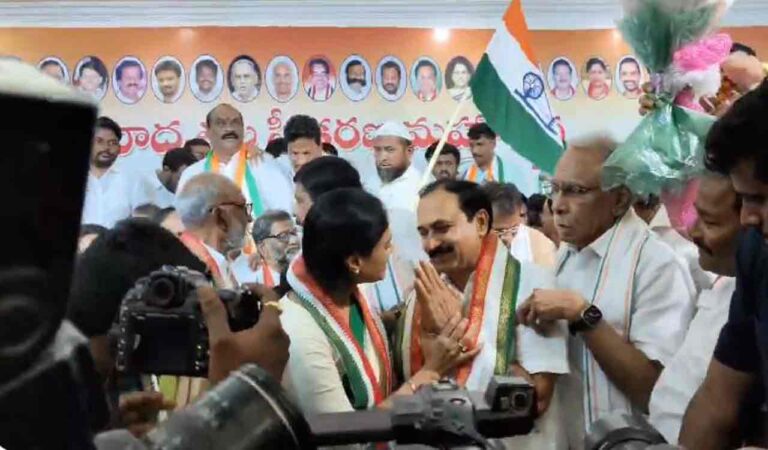 He joined Congress in presence of YS Sharmila, who welcomed him into the party fold by putting a Congress scarf around his neck.