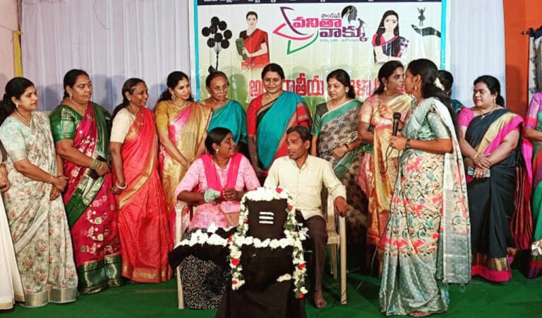 Mancherial: Vanitha Vaakku, a town-based voluntary organisation felicitated a physically challenged woman and street vendor for performing wedding of five financially weak couples, by presenting a sari and Rs 5,000 at a programme held to mark International Women’s Day here on Wednesday.