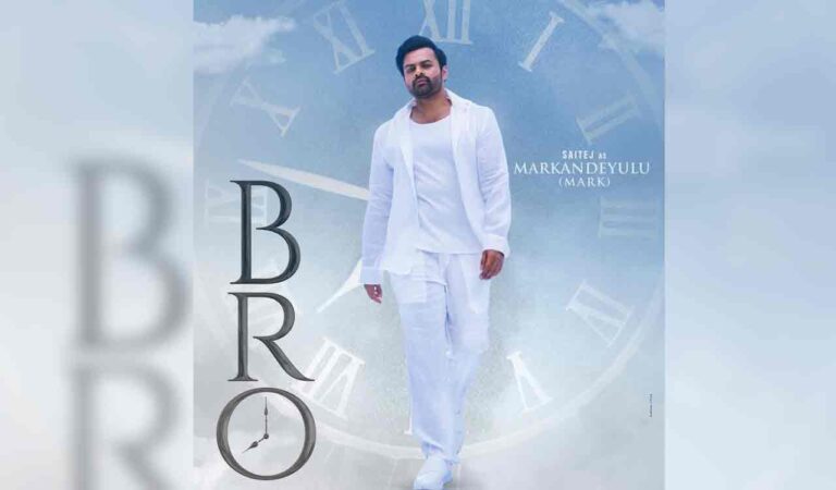 Today, People Media Factory, the producer of BRO, released Sai Dharam Tej’s first style poster. Sai Tej will play Mark, Markandeyulu in the film. The poster is pretty cool at first glance and the maker has given his fans the most stylish look of Sai Dharam Tej yet. Sai Dharam Tej is dressed in a white outfit, which adds a lot of elegance and royalty to the pastel of the poster.