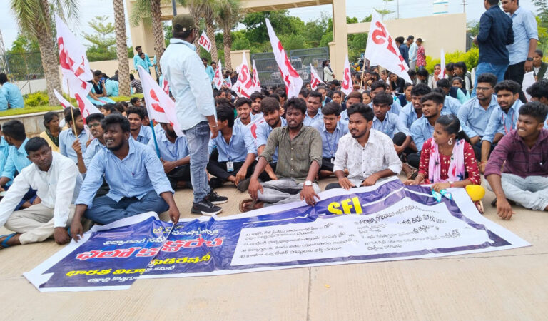 In a similar protest in Khammam, SFI regional president T Praveen demanded that vacant teacher and lecturer positions in public schools and colleges be filled.