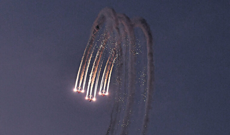 The eyes of participants at Asia’s largest civil aviation summit were glued to the sky to witness the spectacular aerial formations. — Photos: Anand Dharmana