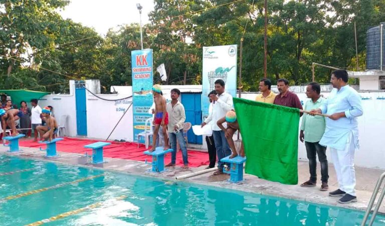 Adilabad: City Chairman Jogu Premender opened the swimming competition here on Monday. The event is organized by the town’s KK Swimming Academy.
