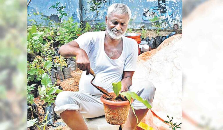 Despite teaching at government degree colleges, schools and many other institutions in the past, Goode now runs a nursery to make ends meet. With the support of his stepbrother Ganesh Kumar, Goud runs a nursery near the Government Degree College in Siddipet. Ganesh said he used to travel by bike with his brother, bringing plants and buckets. During the summer months, Goud’s daily job is to water the plants by filling water in buckets and tanks connected to the circulation, he said.