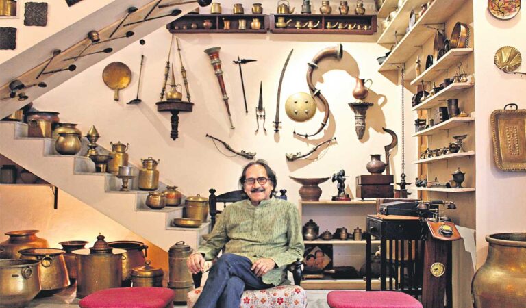 When asked how it all started, he laughed and recalled his mother. “I was working in Chennai and decided to move my mother there. She brought a couple of big brass appliances and there was no room in the kitchen, so I put them in the living room as a display.”
