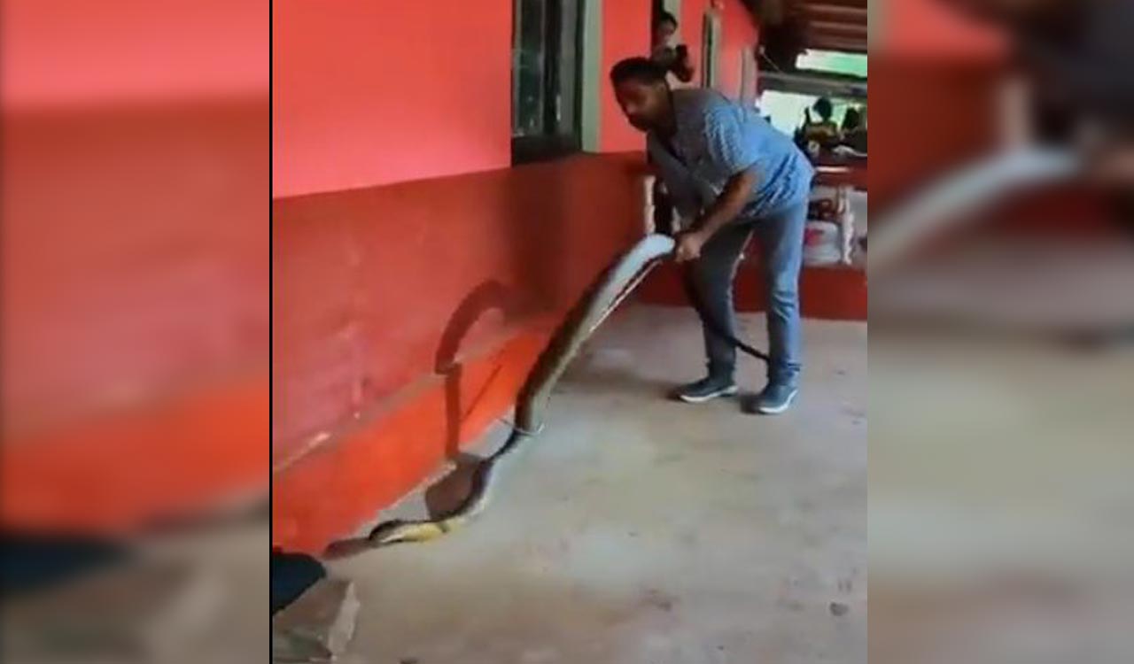 Hyderabad: Video of the man rescuing a giant 15ft king cobra with his bare hands and heading into a wild forest has gone viral on social media platforms. Indian Forest Service (IFC) officer Susanta Nanda tweeted the viral video with the caption “The king cobra is vital in the food chain to maintain the balance of nature. Rescued and released from the wild. The whole operation is done by trained snake catchers. Please don’t try it yourself. With the rainy season coming, they show up in all odd places.”